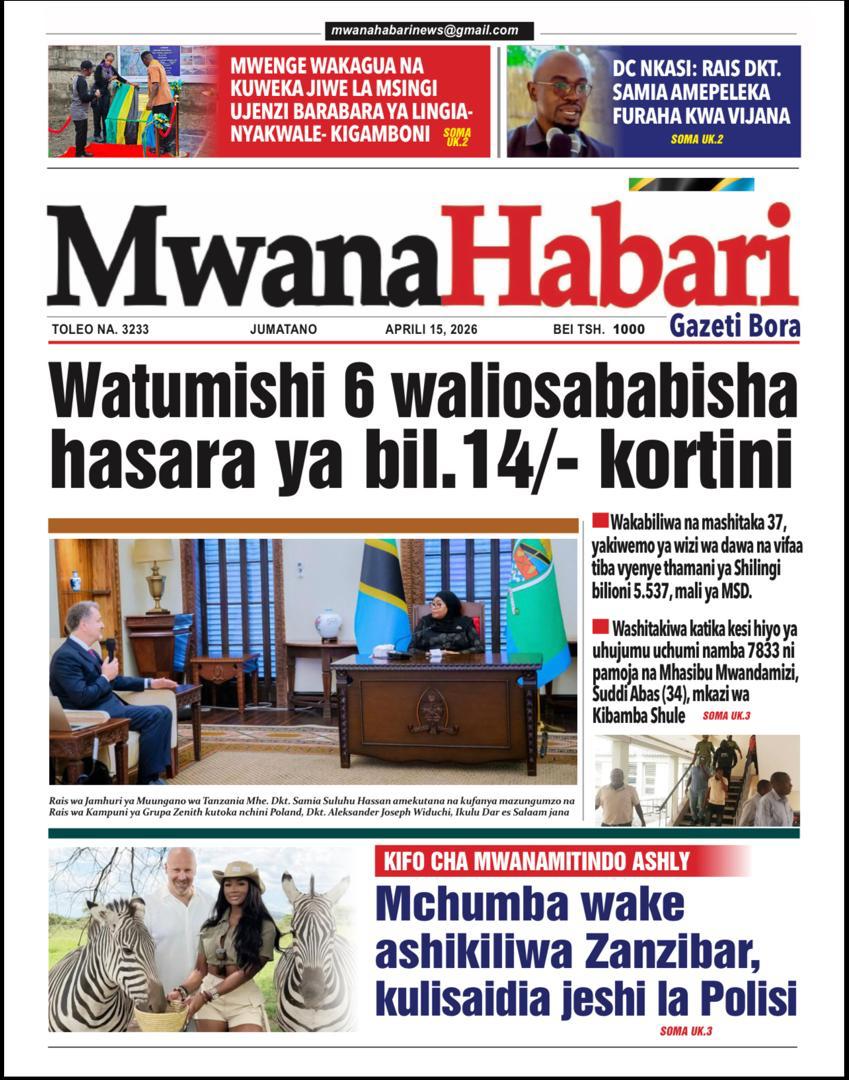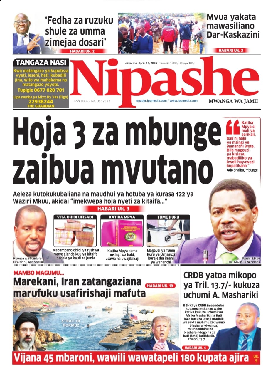 NyumbaniMAGAZETI VICHWA VYA HABARI KATIKA MAGAZETI YA LEO APRILI 15, 2026 HOJA 3 ZA MBUNGE ZAIBUA MVUTANO byMagina Media -Aprili 14, 2026 0