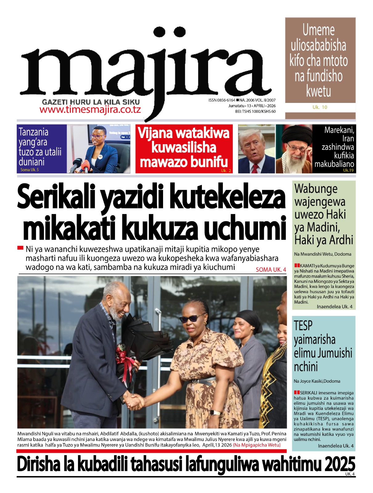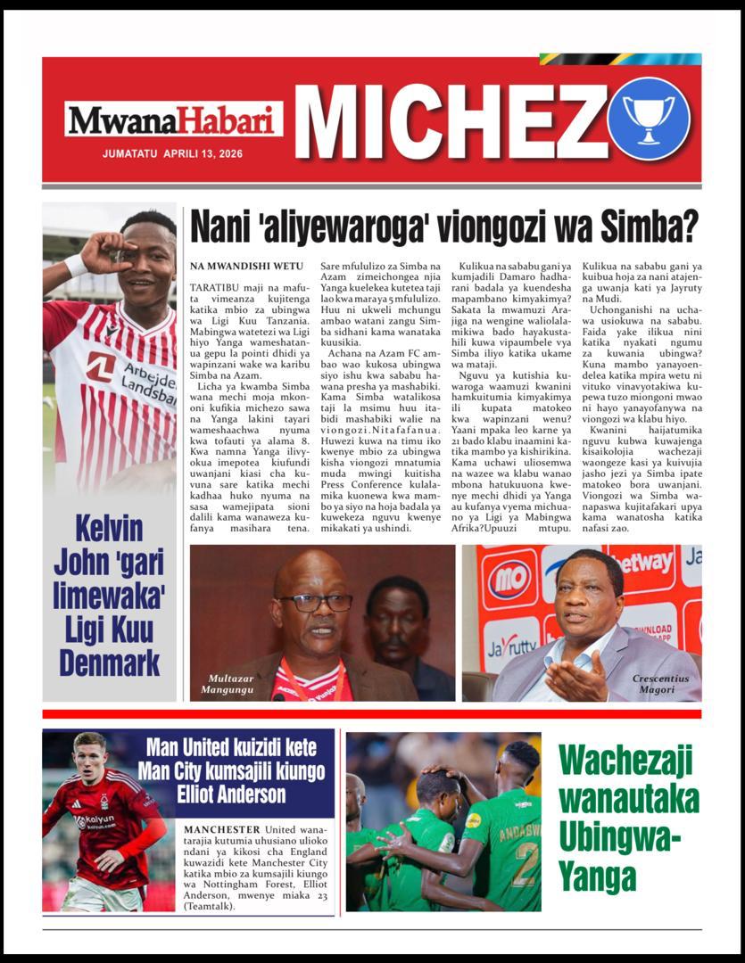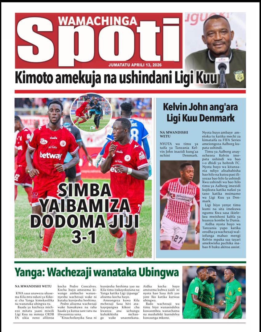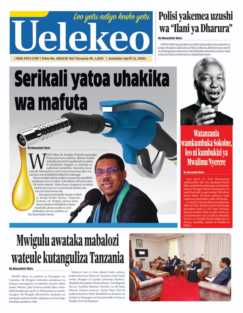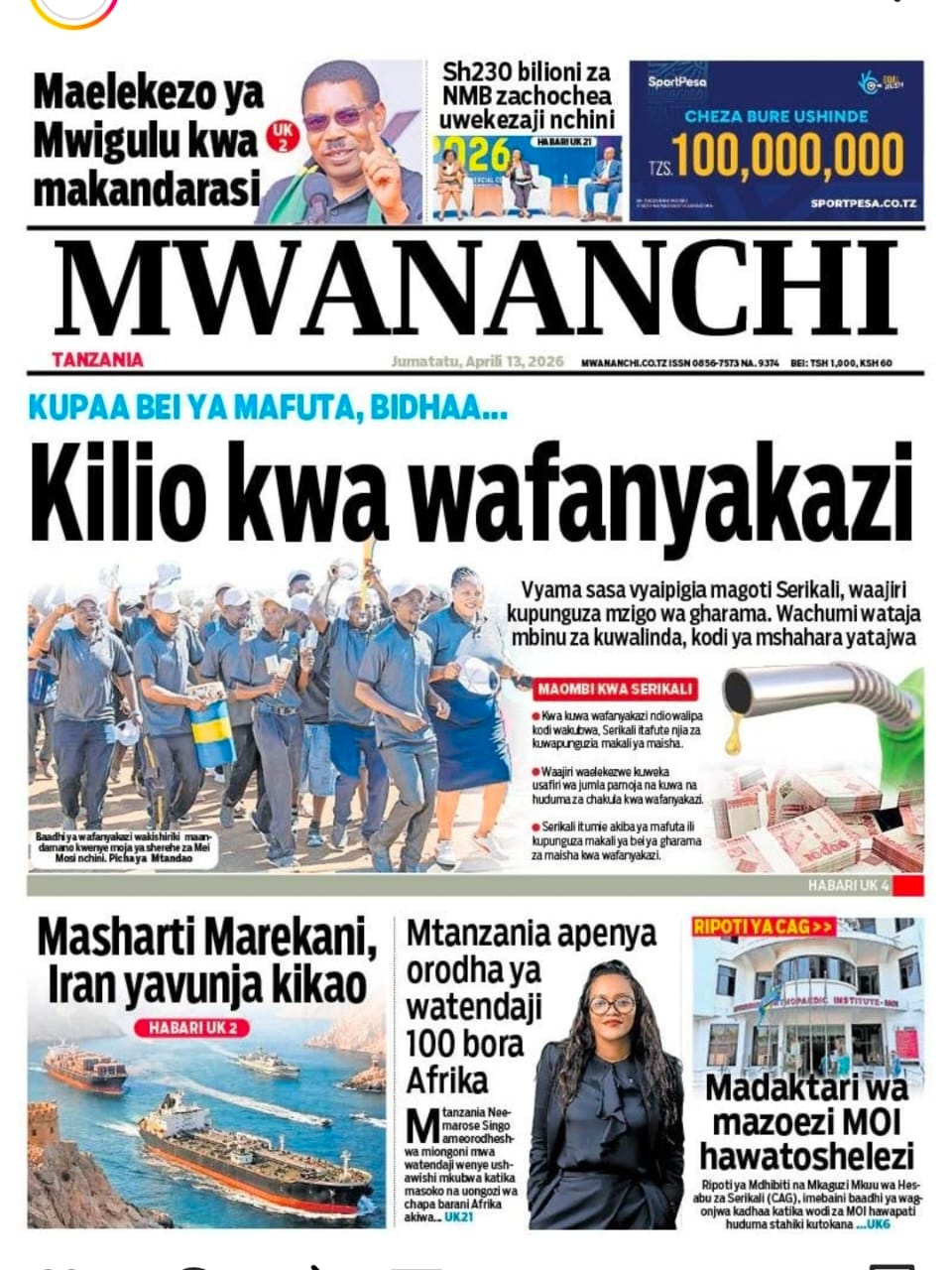 NyumbaniMAGAZETI VICHWA VYA HABARI MAGAZETI YA LEO JUMATATU APRILI 13,2026 MWIGULU: TUTAVUKA SALAMA byMagina Media -Aprili 12, 2026 0