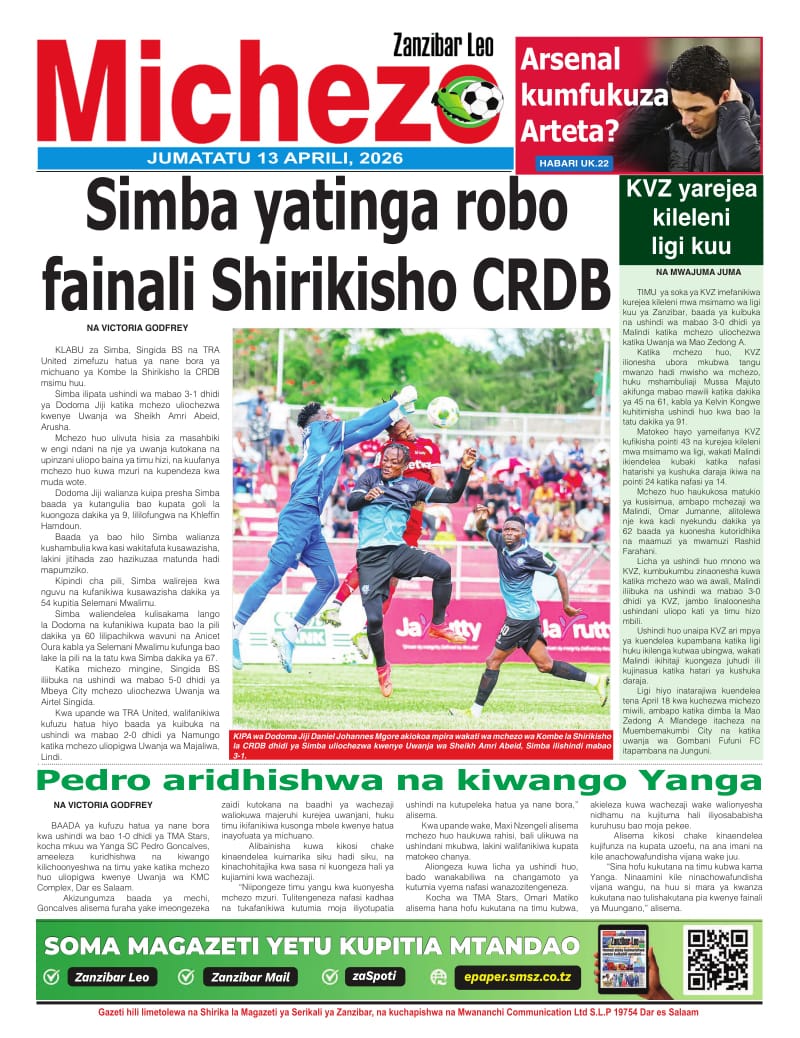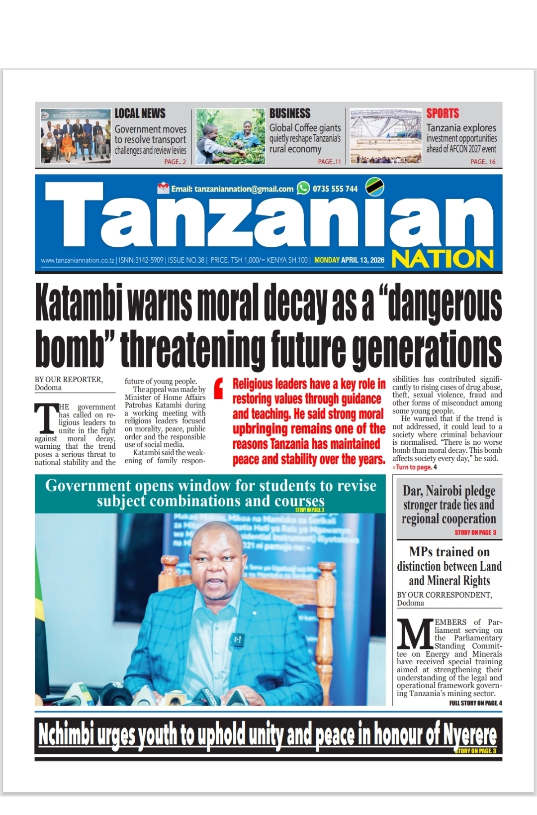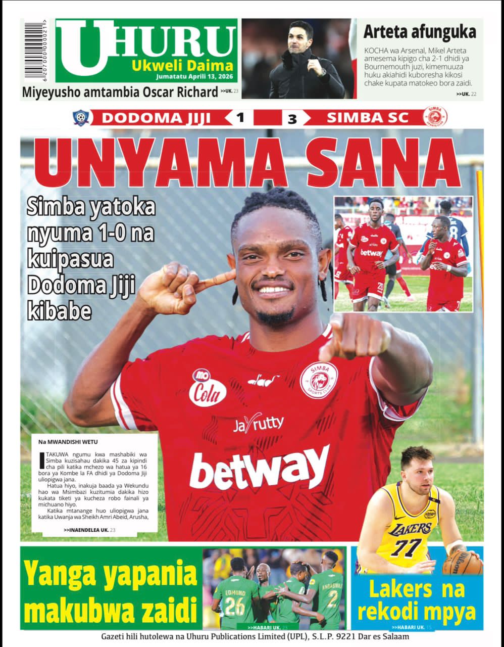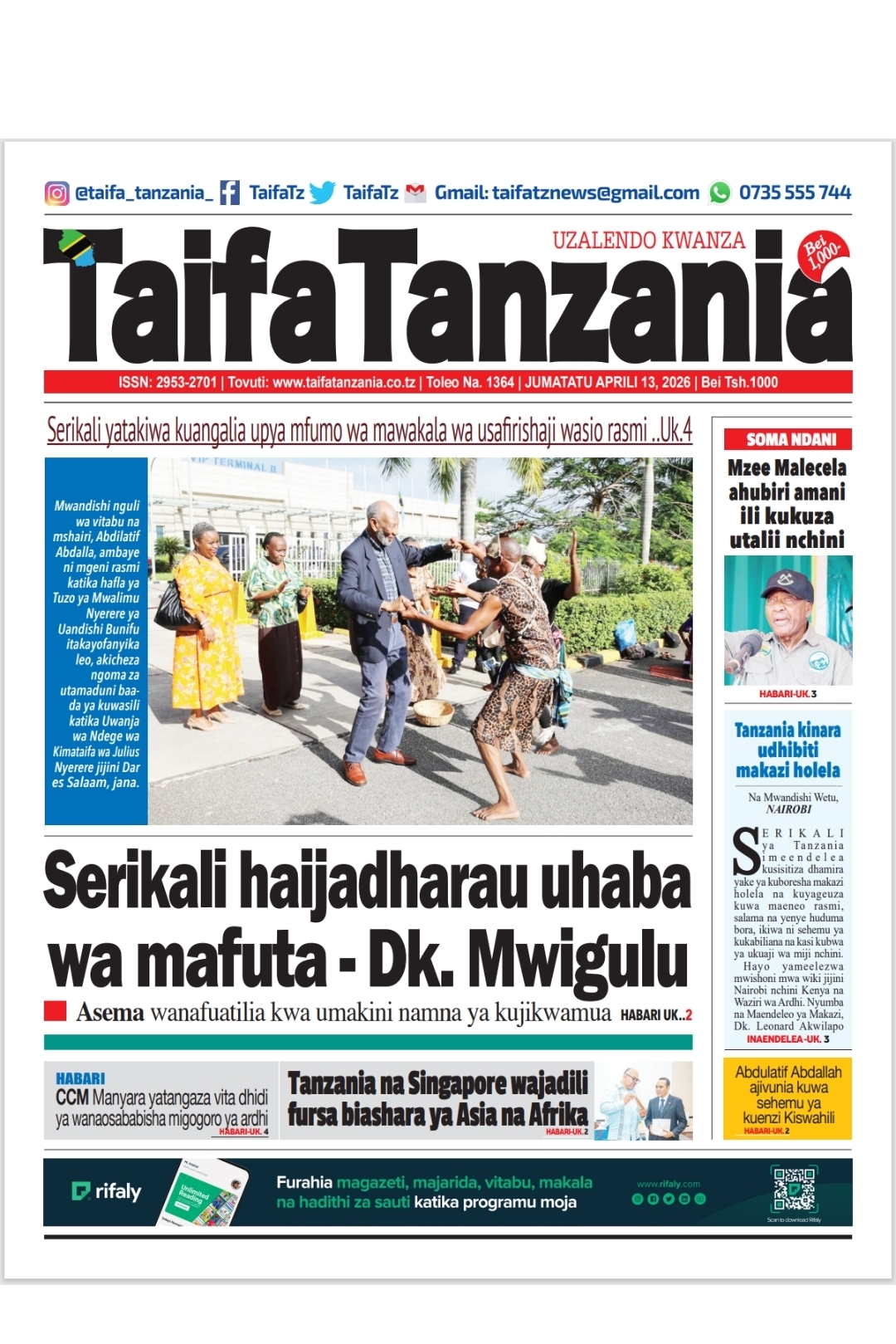 NyumbaniMAGAZETI VICHWA VYA HABARI MAGAZETI YA LEO JUMATATU APRILI 13,2026 MWIGULU: TUTAVUKA SALAMA byMagina Media -Aprili 12, 2026 0