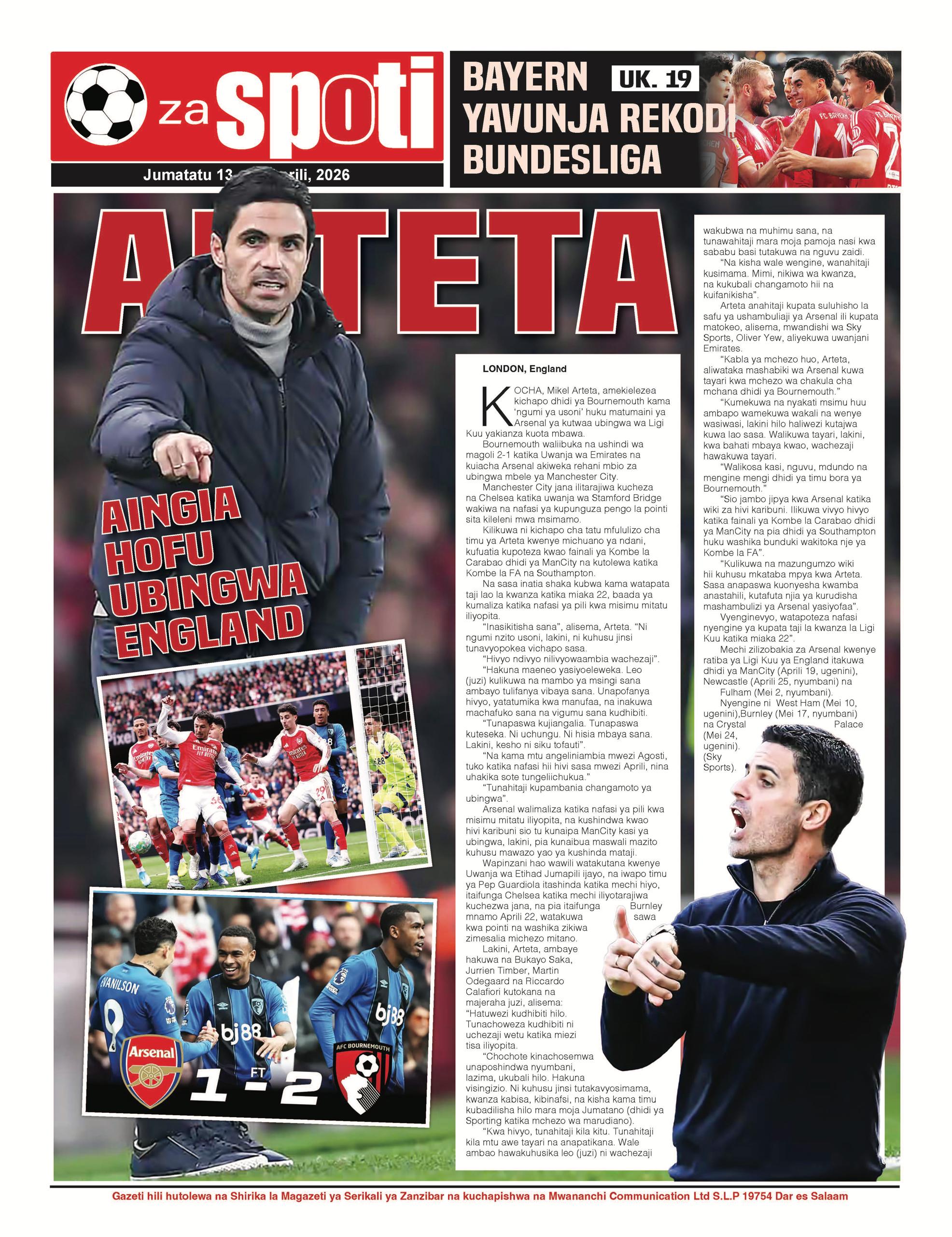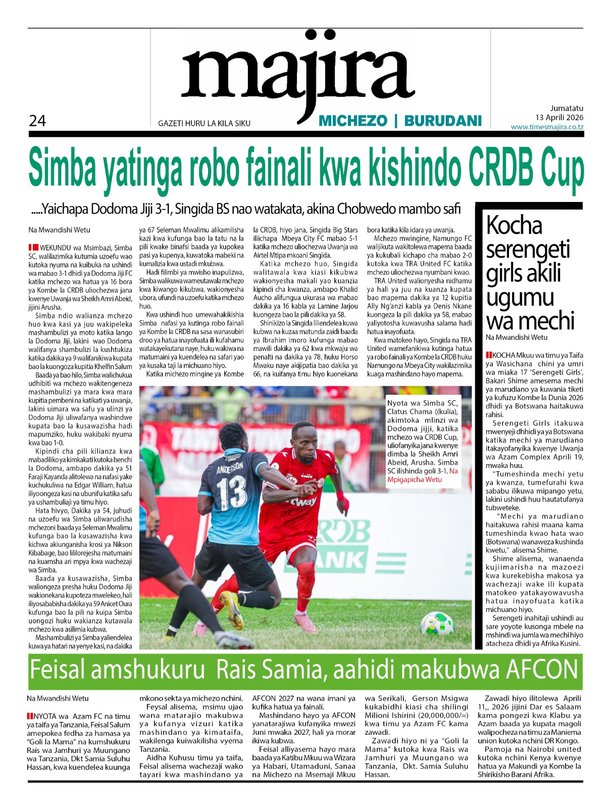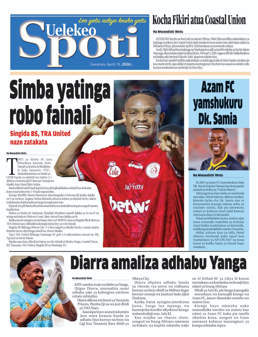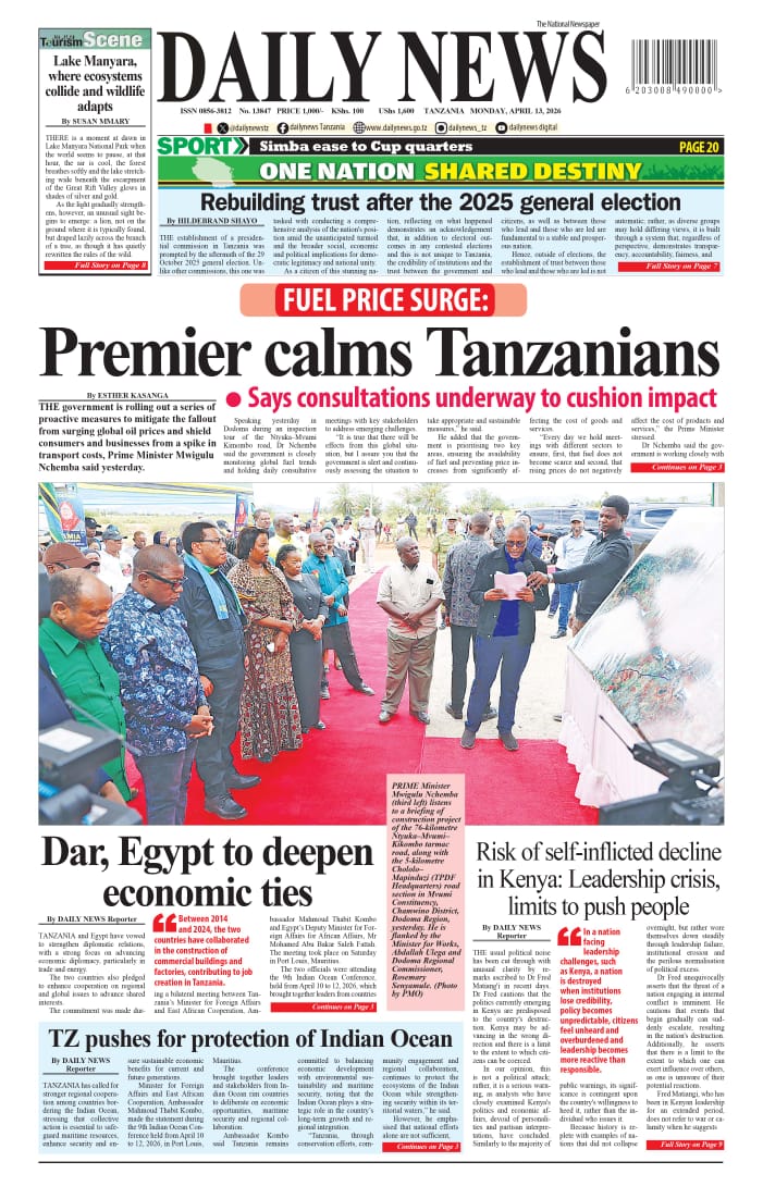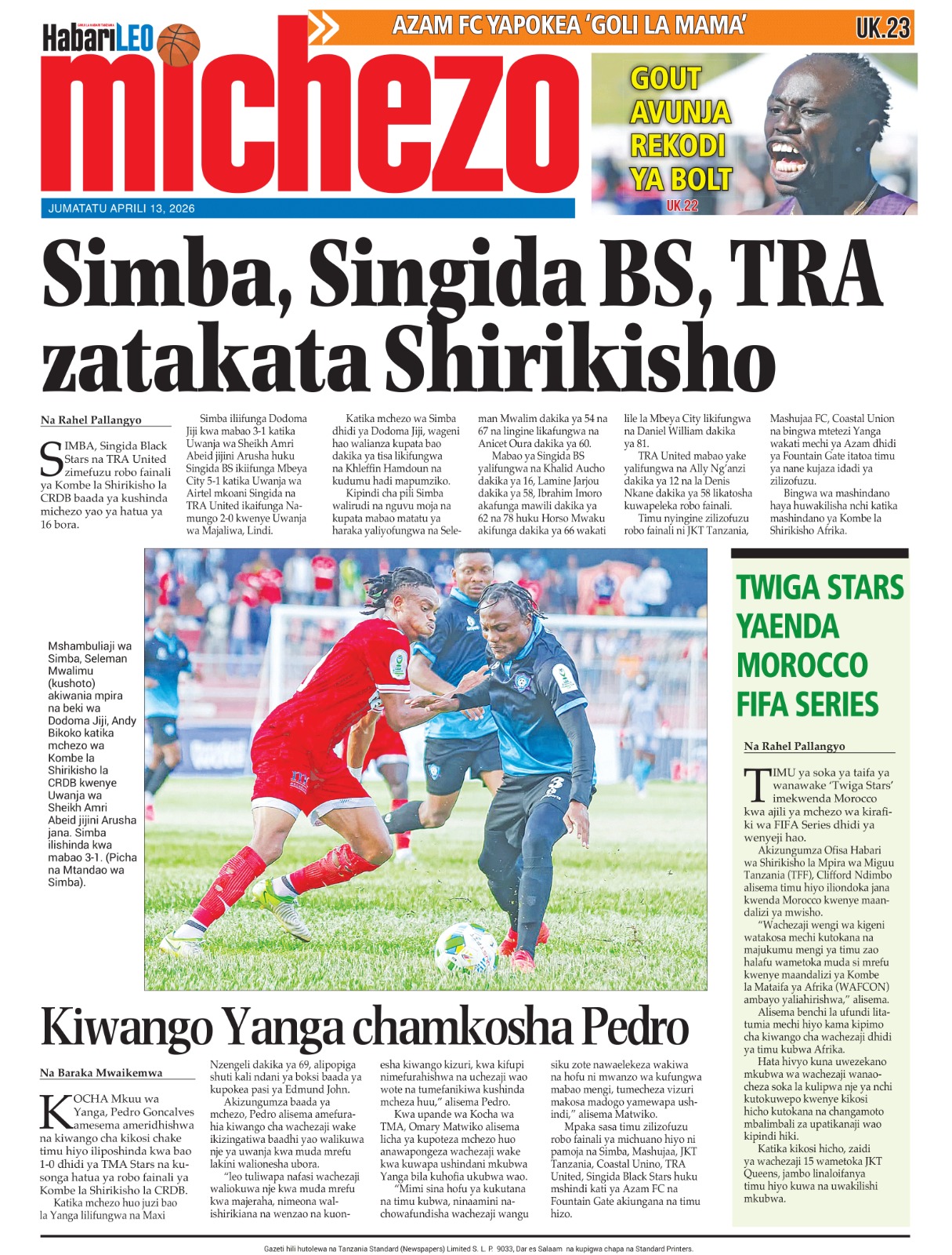 NyumbaniMAGAZETI VICHWA VYA HABARI MAGAZETI YA LEO JUMATATU APRILI 13,2026 MWIGULU: TUTAVUKA SALAMA byMagina Media -Aprili 12, 2026 0